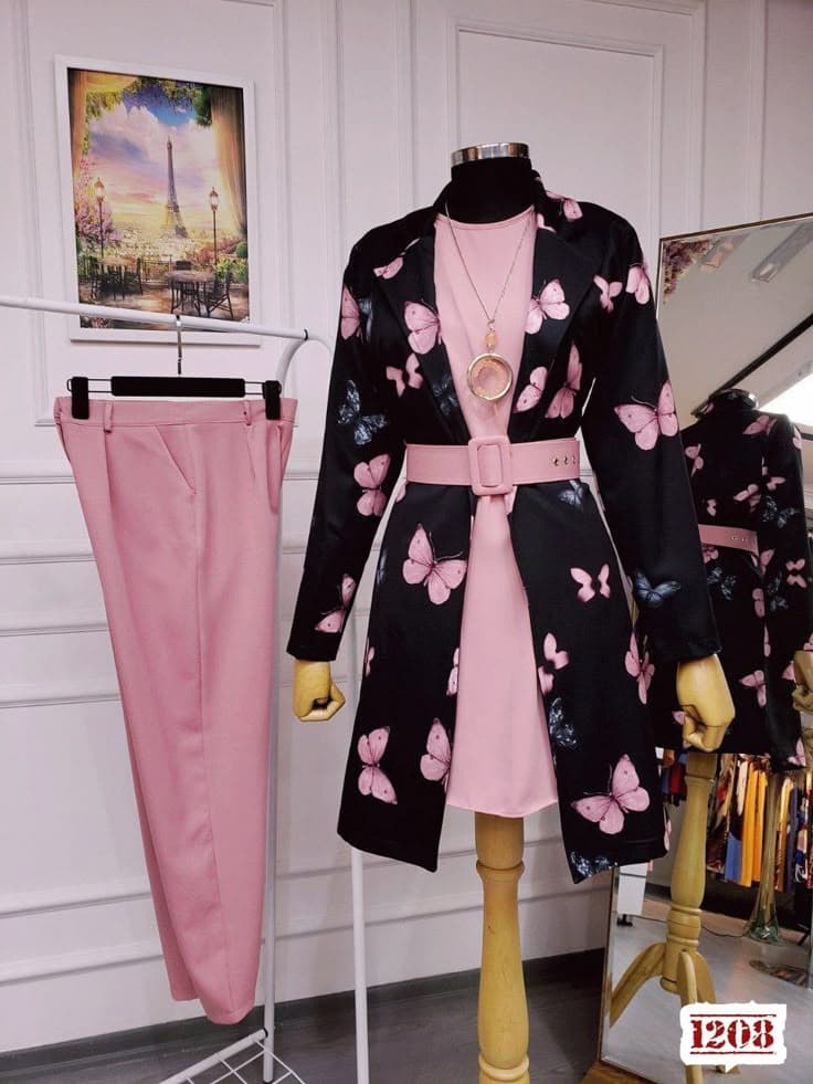 کت با کمربند پارچهای و طرح پروانههای چاپی
