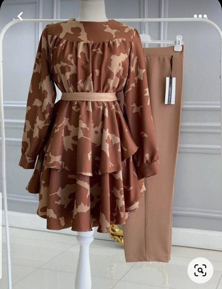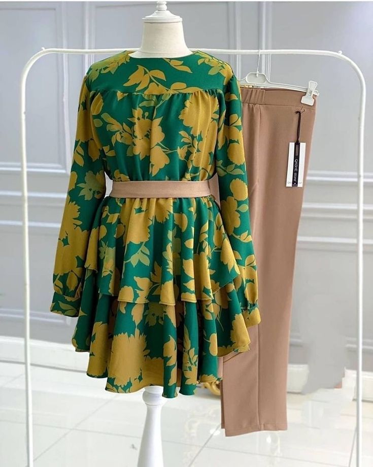 آستینبلند، کمر با کمربند، دامن چیندار دو طبقه