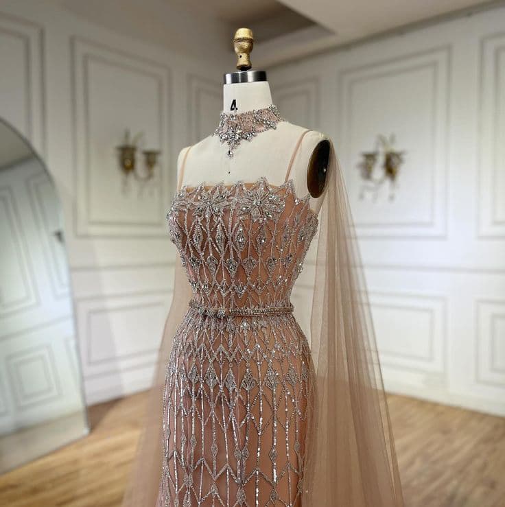 – مروارید و سنگ دوزی دقیق، بهویژه در بالا تنه و آستینها