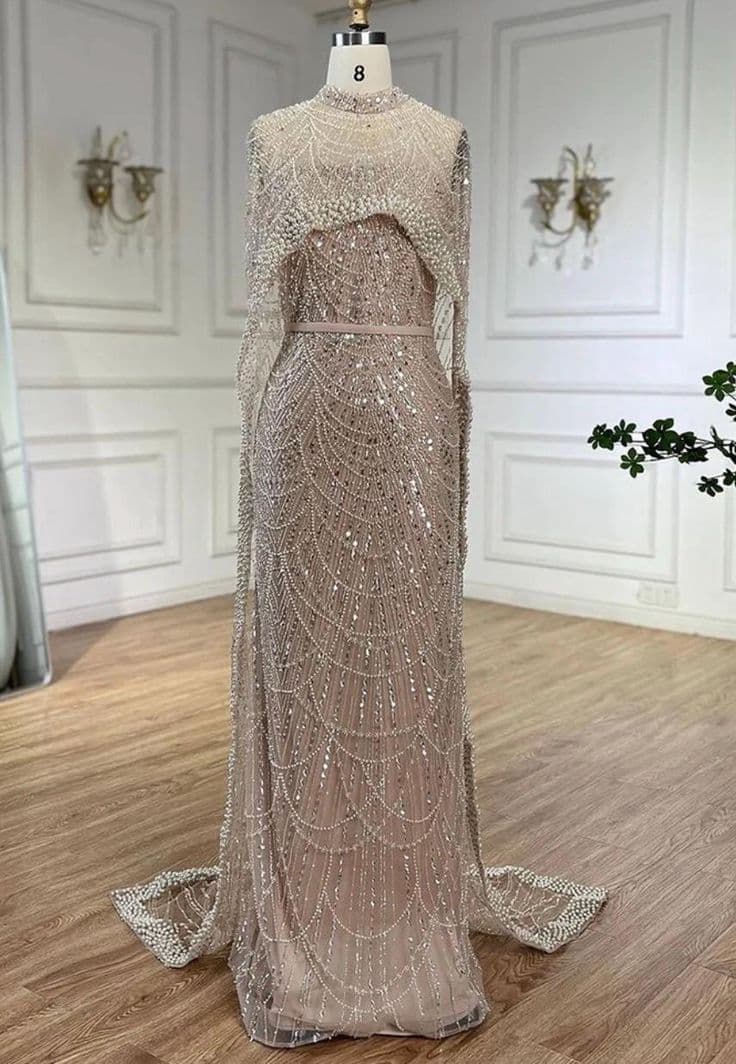 – تزئینات مرواریدِ سفید یا عاجی دوخته‌شده در لایه بیرونی — طرح‌های آبشاری و جلوه درخشان